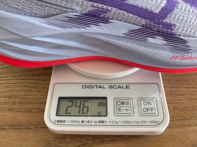 かなりの厚底でプレートがないモデルだからか、若干の不安定さを感じます。